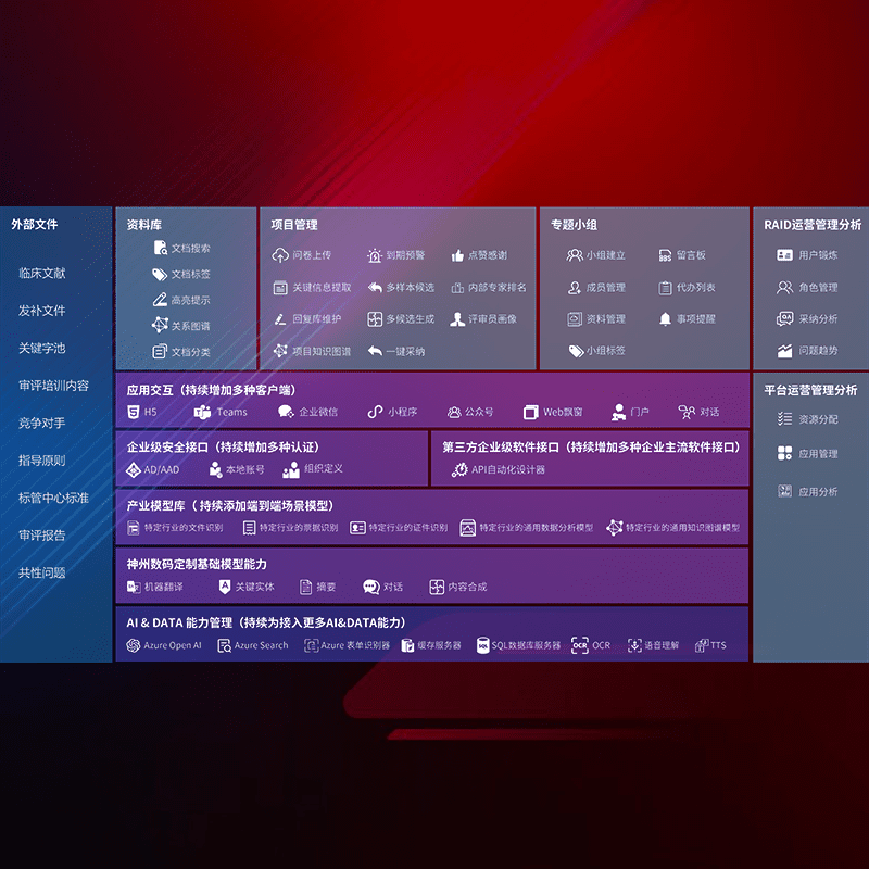 医疗器械产品上市前,,要熟悉严格与繁复评审标准,,,整理分析监管机构指导文件中的海量信息。。。。企业急需一个智能化解决方案,,,提升知识管理效率,,,提高评审通过率,,,,以提升其市场竞争力。。。。